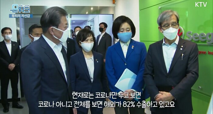 또한, 이미 많은 물량을 해외로 수출하여 세계 각국의 방역에 기여를 하고 있습니다. 씨젠의 경우에는 수출의 비중이 95%에 달한다고 그렇게 들었습니다. 이렇게 세계 각국의 방역에 기여를 하고 있고 또 우리 경제에도 힘을 보태고 있습니다.