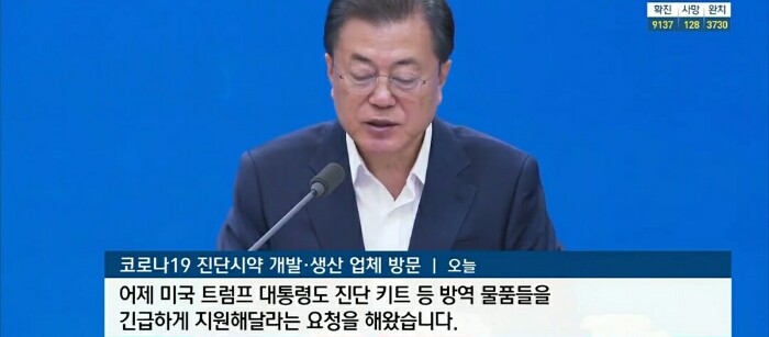 미국 트럼프 대통령이 진단키트 등 방역물품들을 긴급하게 지원해 달라는 요청해 왔다.