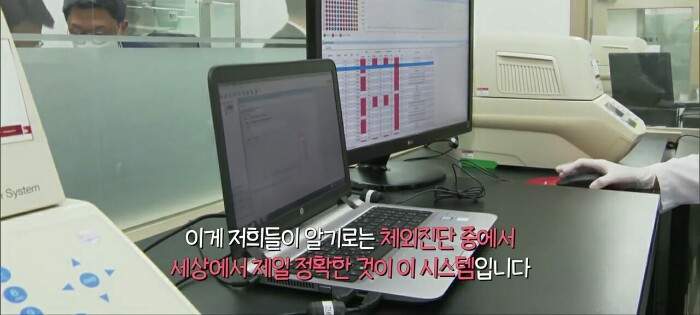 실시간 유전자 증폭 검사기술을 이용해 하루 이상 걸리던 검사시간도 여섯 시간 이내로 줄였습니다. 여기 계신 다섯 개 기업이 하루 13만5000명 분량을 생산해내고 있습니다.