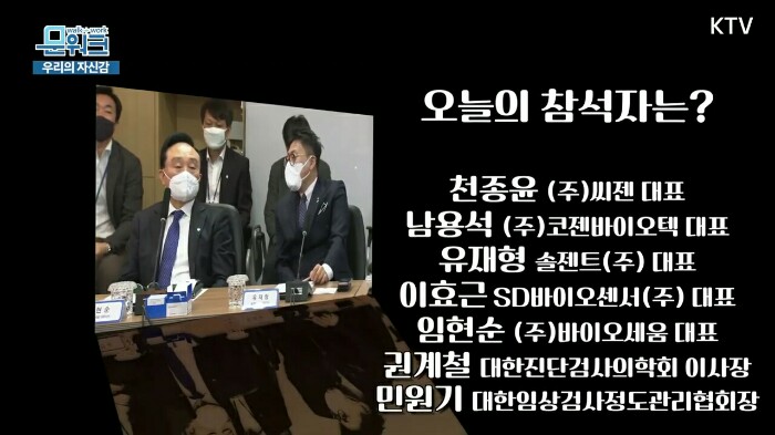 함께 긴급사용승인을 받은 코젠바이오텍, 솔젠트, SD바이오센서, 바이오세움의 대표님들도 함께 모셨습니다. 국내외 주문량이 많아 연구소 직원까지 생산에 참여한다고 들었습니다. 휴일과 밤낮을 잊고 땀 흘리고 계신 여러분께 존경과 격려의 박수를 보냅니다.
