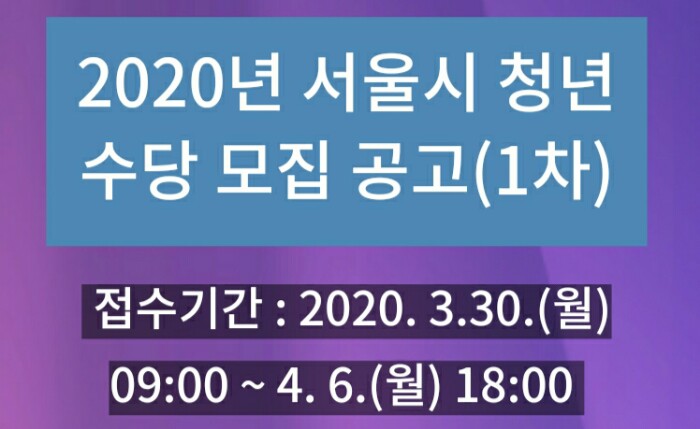 1. 2020년 서울시 청년수당 모집을 공고한다.