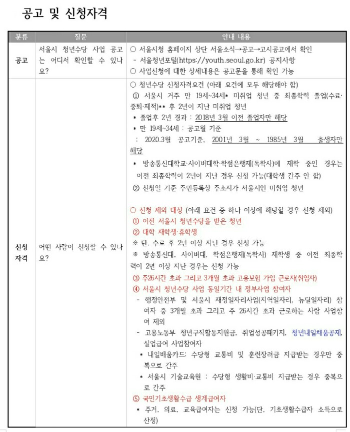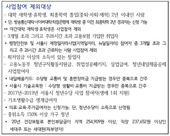 3. 서울 청년수당 제외 대상은 다음과 같다.