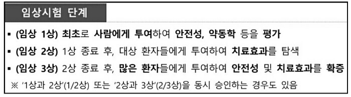 - 1상과 2상(1/2상) 또는 2상과 3상(2/3상)을 동시 진행하거나 각 임상의 진행에 따라 a, b (전기, 후기)로 구분하기도 합니다.