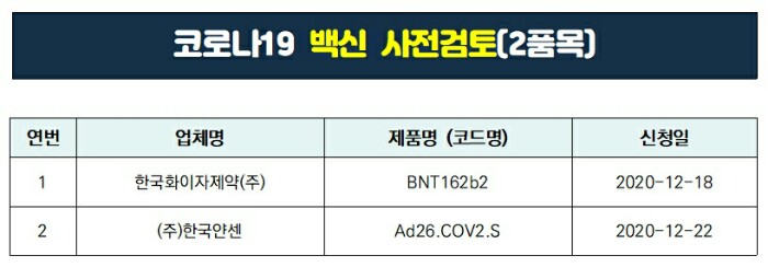 2. 코로나19 백신 사전검토 단계 (2품목)