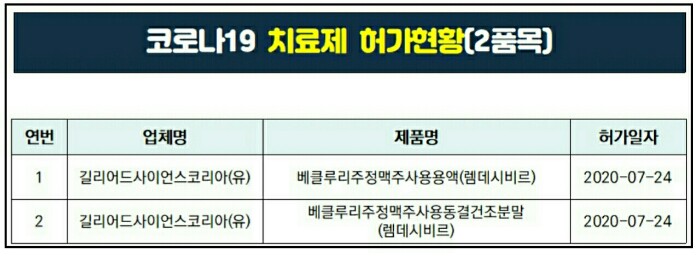 - 임상시험 내용 : 코로나19 경증 환자 대상 안전성, 내약성 및 바이러스학 평가
