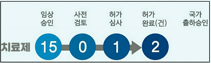 < 임상승인 → 사전검토 → 허가심사 → 허가완료 → 국가출하승인 >