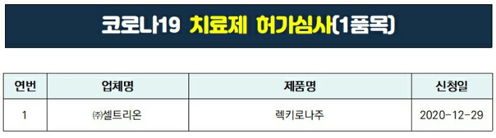 ▶ 코로나19 치료제 허가심사 단계 (1품목)