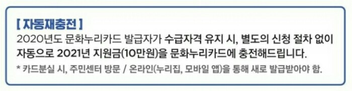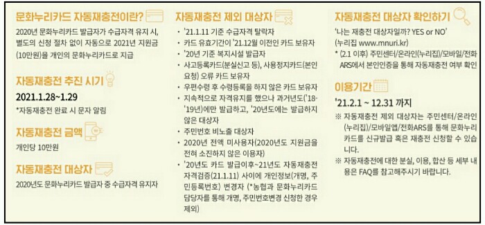 2. 2021년부터 문화누리카드 자동재충전 제도가 시작됩니다.