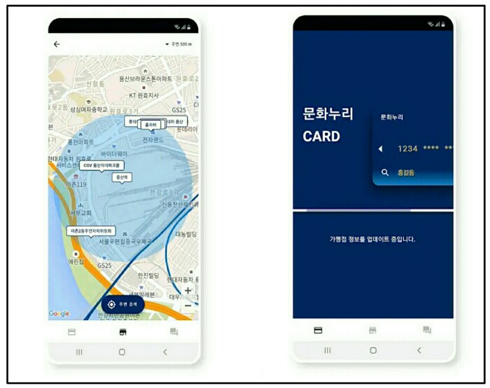 그동안 이용자들은 PC를 통해서만 문화누리카드 가맹점을확인할 수 있어 가맹점을 파악하는 데 어려움이 있었습니다. 이를 개선하기 위해 2021년부터는 모바일 앱을 통한 위치기반으로 문화누리카드 가맹점을 확인할 수 있습니다.