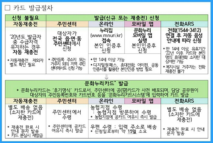 2021년 문화누리카드 신규발급 및 재충전 신청방법