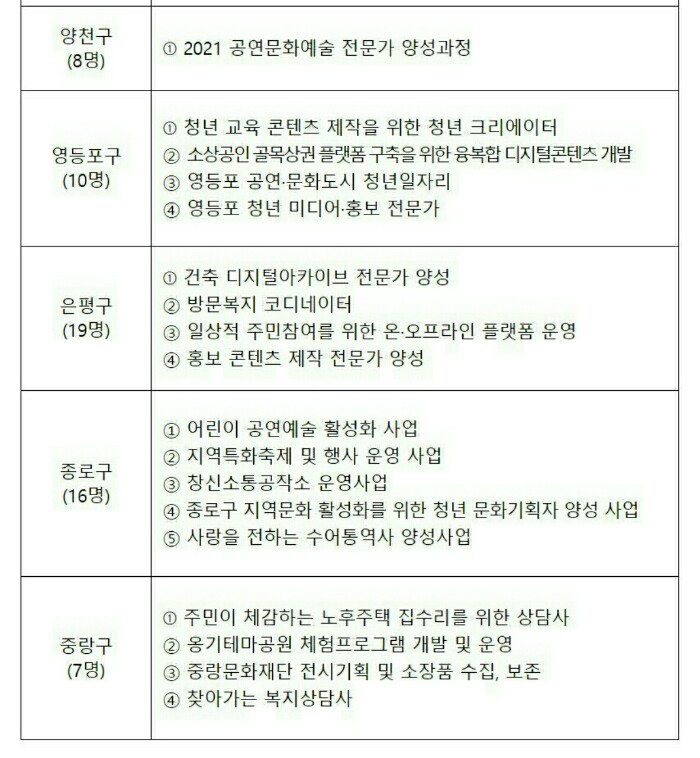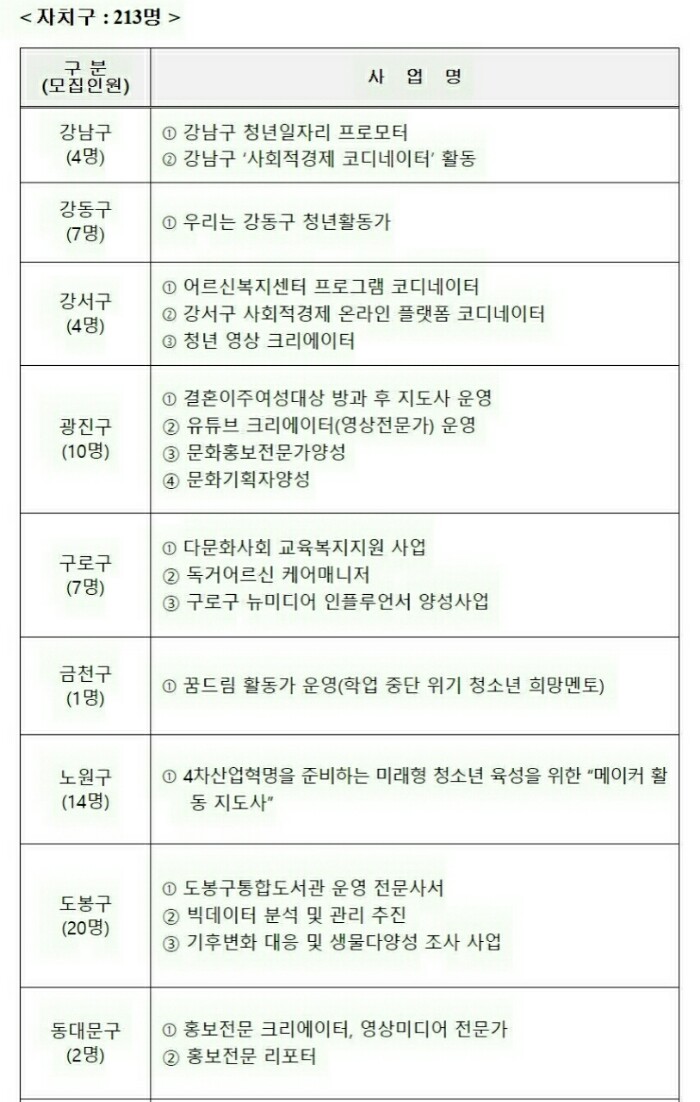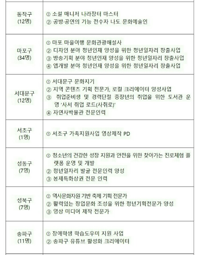 12. 서울형 뉴딜일자리 사업 목록