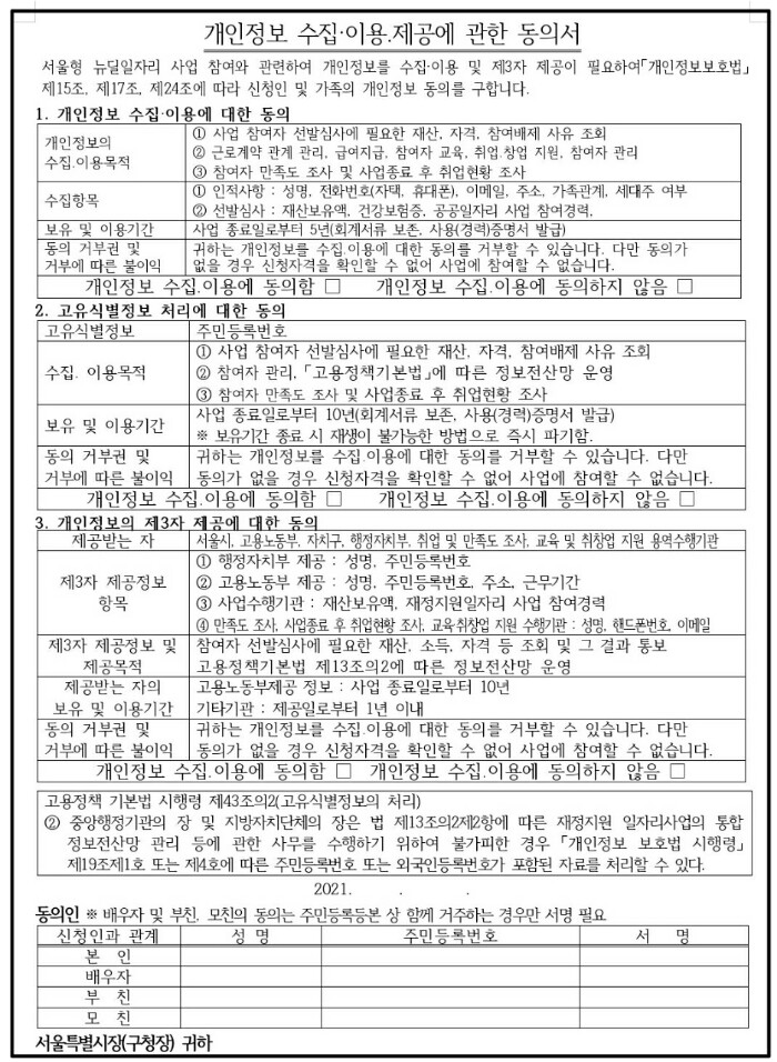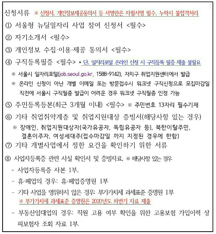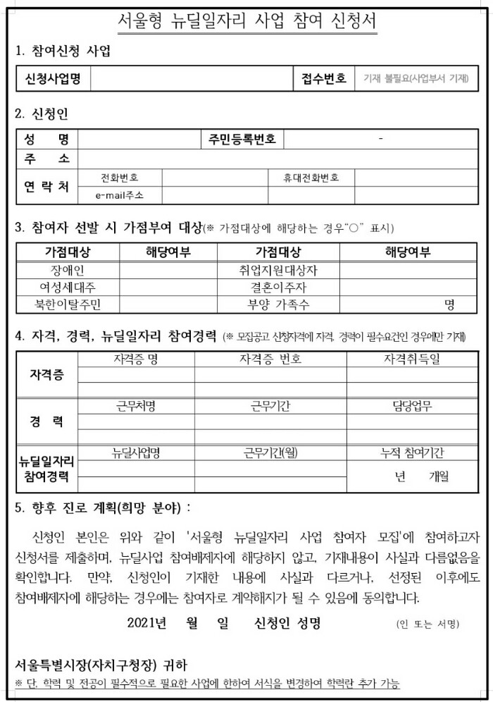 ① 서울형 뉴딜일자리 사업 참여 신청서 <필수>