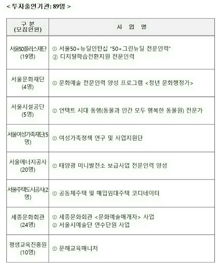 8. 서울시 뉴딜일자리 선발결과 (합격자) 발표 : 사업별 개별 통보합니다.