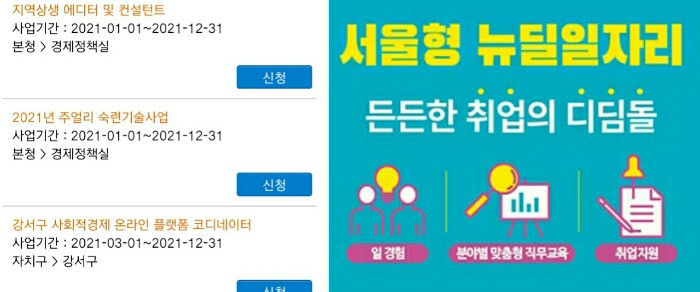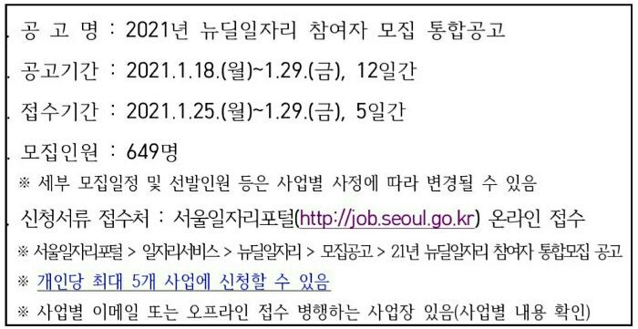 서울시 2021년 뉴딜일자리 참여자 모집 안내