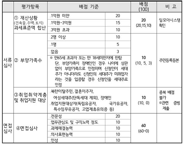 - 장애인, 취업지원대상자(국가유공자, 독립유공자 등), 북한이탈주민, 결혼이주자, 여성세대주