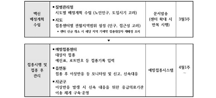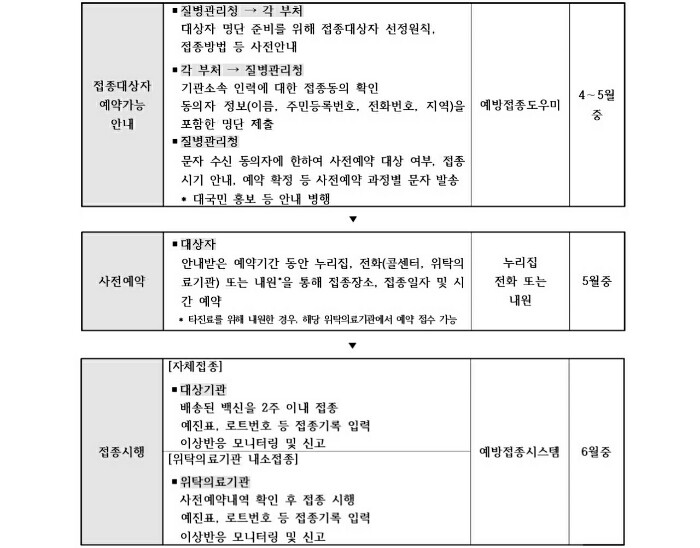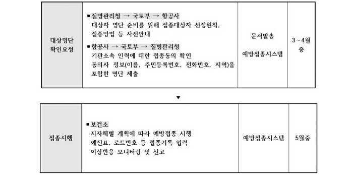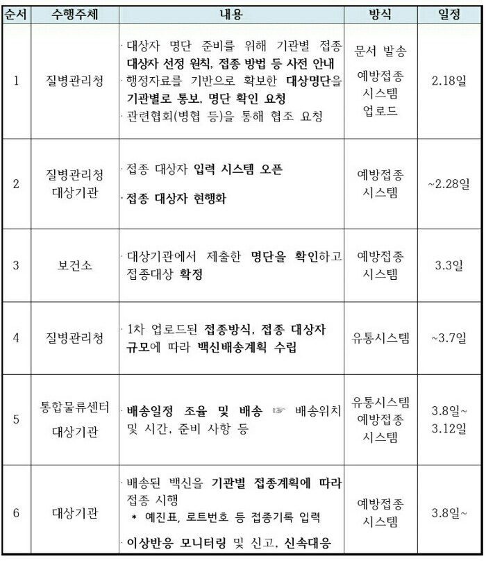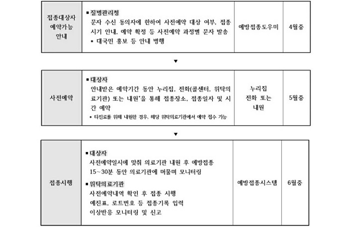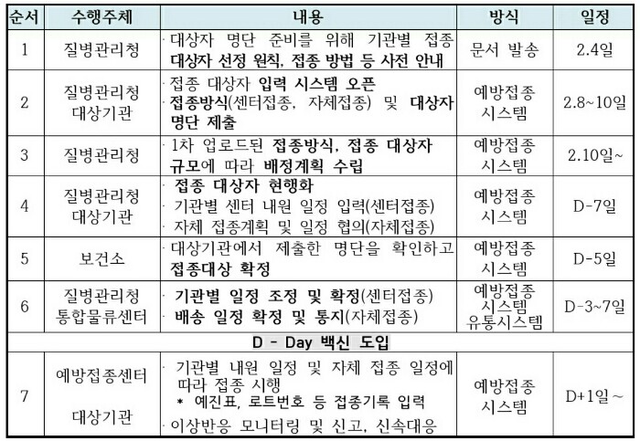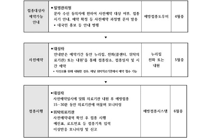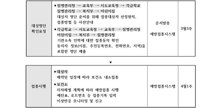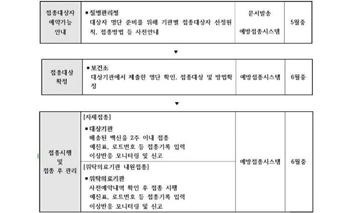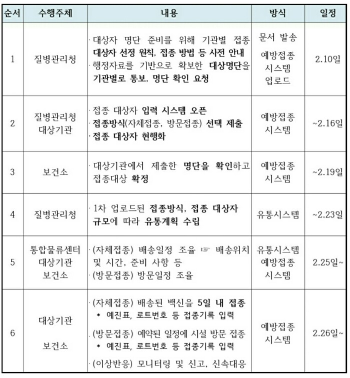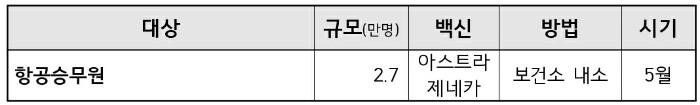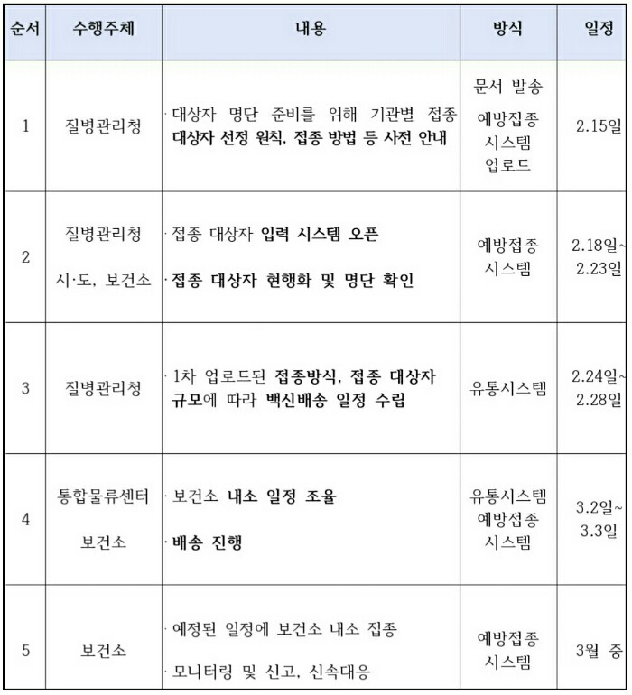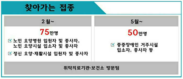 - 접종 실시 : 3월 중 (1차 접종은 3월, 2차 접종은 5월)