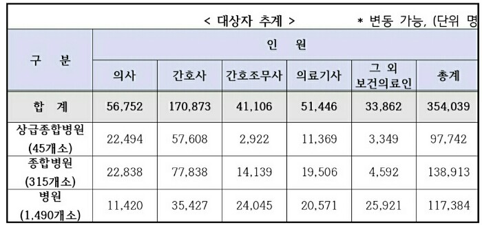 보건의료인 대상은 환자 접촉이 많아 감염위험이 높은 의료기관 및 약국 등의 보건의료인으로 의사, 치과의사, 한의사, 조산사, 간호사, 간호조무사, 약사, 한약사, 임상병리사, 방사선사, 물리치료사, 작업치료사, 치과기공사, 치과위생사, 보건의료정보관리사, 안경사, 응급구조사, 영양사, 위생사, 보건교육사 등입니다.