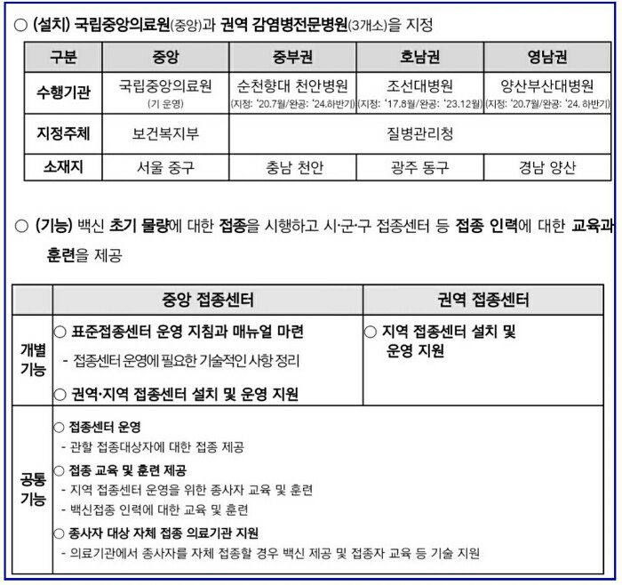 2월 1일 백신도입 초기 물량 접종과 예방접종센터 표준모델을 마련하고 권역 및 지역센터 교육 등을 위해 중앙감염병전문병원(국립중앙의료원)에 설치합니다.