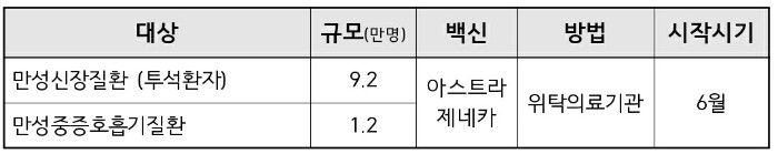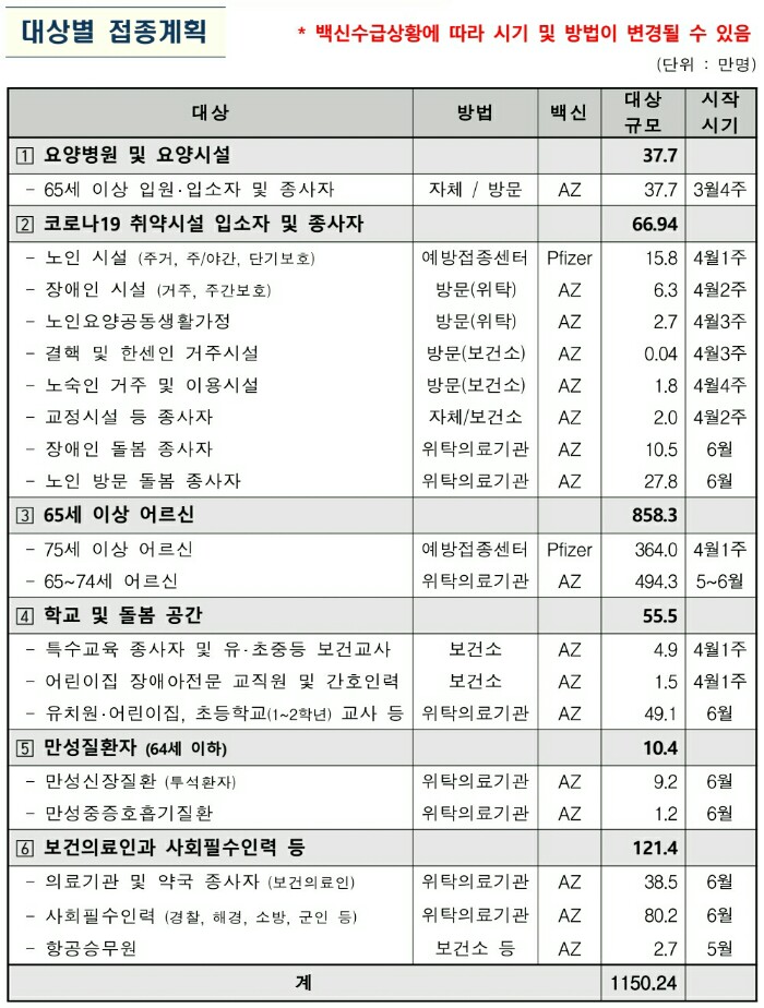 일정 : 1차 4월 1주, 2차 6월 3주 접종