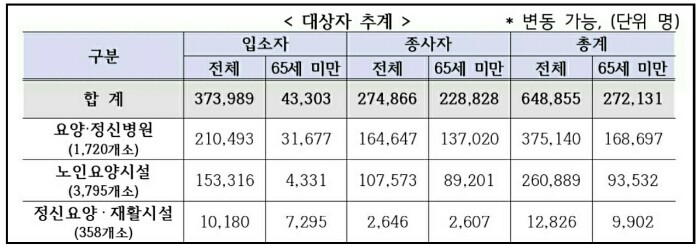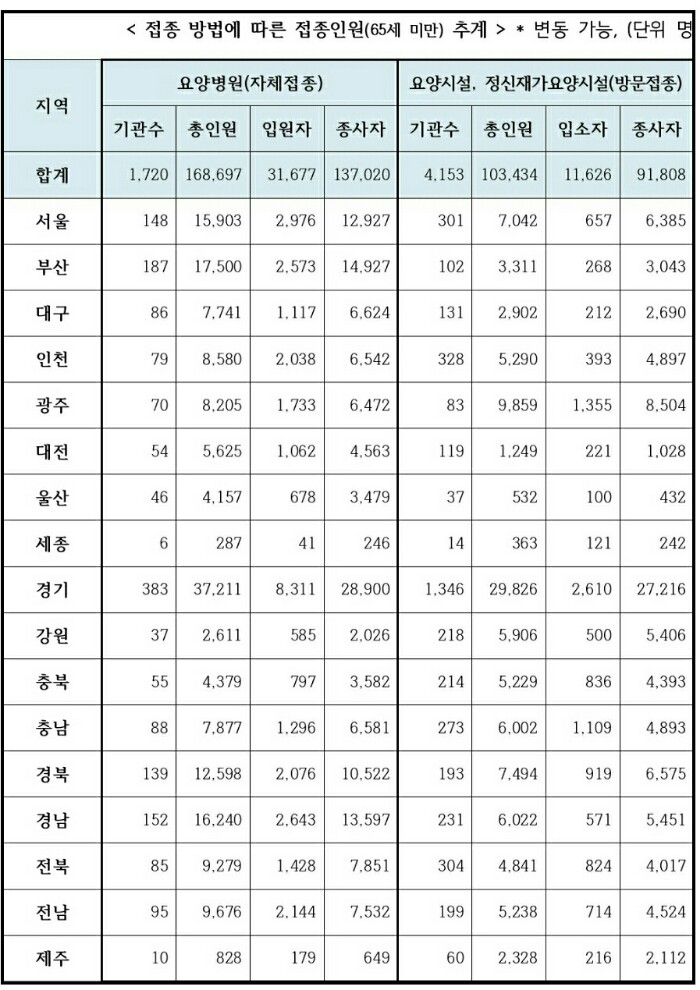 1. 요양병원, 요양 시설 등 65세 미만 입원 입소자 및 종사자