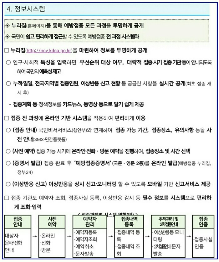 예방접종 관련 정보 안내와 원활한 사전 예약 시스템 운영하기 위해 코로나19 전용 예방접종 시스템을 구축할 예정입니다.