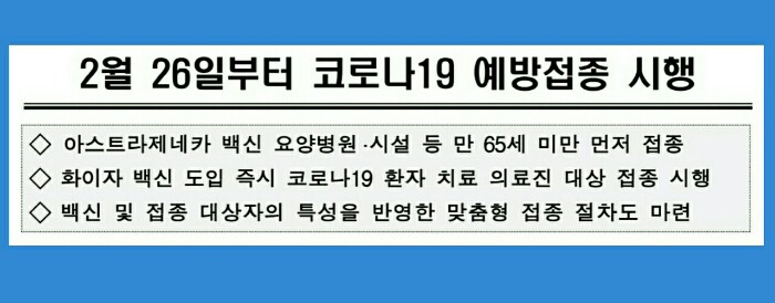 2021년 2월 26일부터 아스트라제네카 코로나 백신 예방접종을 시작합니다.