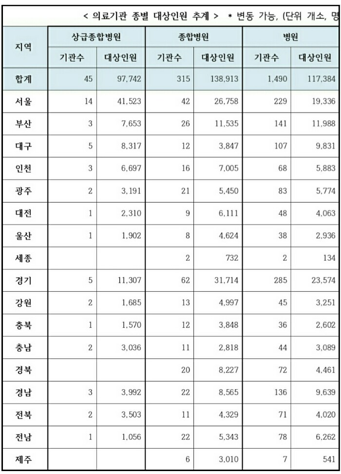 - 접인원 : 최소 규모(의사 4인) : 약 600명/일