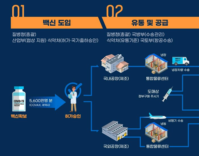 이와 함께, 화이자 백신은 2월 말~3월초 도입해 즉시 중앙 및 권역예방접종센터를 통해 제공되어 코로나19 환자 치료 의료진 약 5만5000여명을 대상으로 예방접종을 시행합니다.