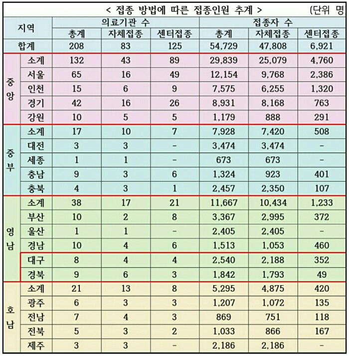 방법 : 군인은 자체접종, 그 외 대상은 위탁의료기관 내원접종