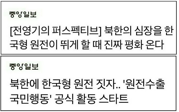 지난 과거 언론들과 야당 국민의힘이 북한 원전에 대한 어떤 태도를 보였는지를 기사를 보면 알수 있습니다.