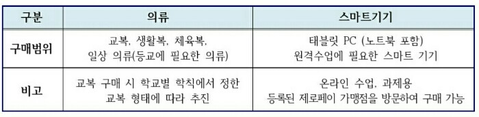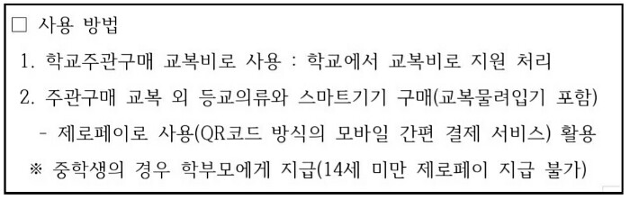 - 교복 구매 시 학교별 학칙에서 정한 교복 형태에 따라 추진합니다.