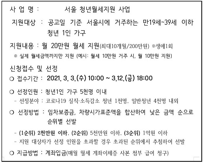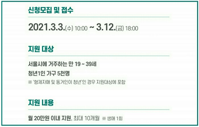 3. 지원대상 : 서울시에 거주하는 만19세~39세 이하 청년 1인 가구
