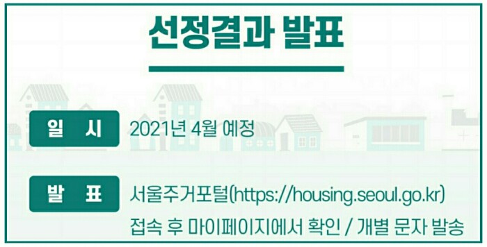 발표 : 서울주거포털 청년월세지원란 마이페이지에서 확인 및 개별 문자 송부 예정입니다.