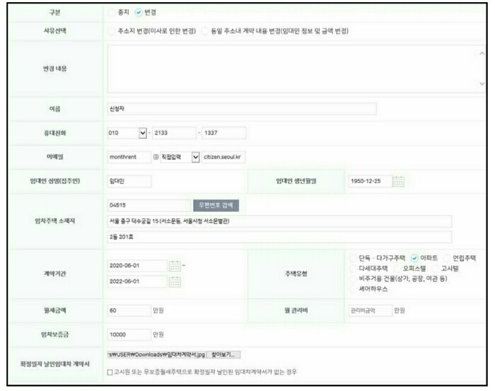 - 확정일자 날인을 받을 수 없는 고시원, 무보증월세 등은 사업자등록증사본, 입실확인서, 등기부등본 등 대체하여 제출합니다.