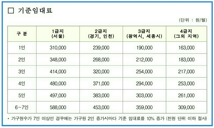 ➊ 서울 1급지 1인가구 기준임대료 : 310000원