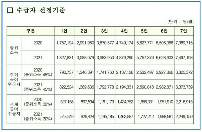 5. 생계급여 기준금액 : 119만5185원 (2021년 3인가구 기준)