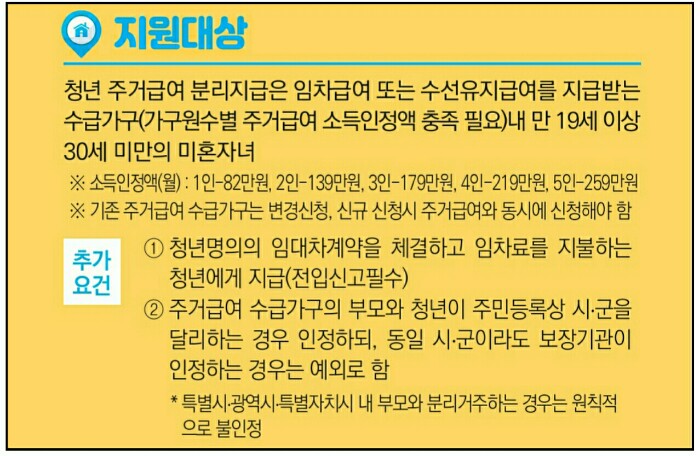 ▶ 청년 주거급여 분리지급 지원 대상 자격