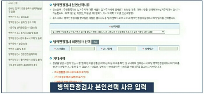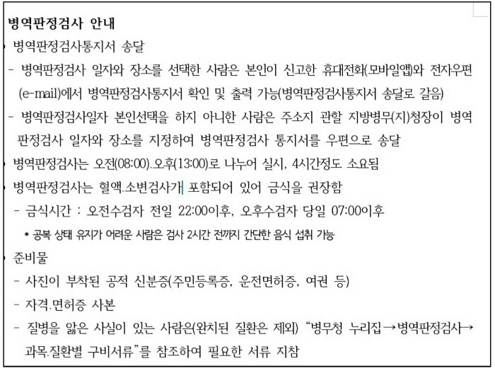3. 병역판정검사는 혈액, 소변검사가 포함되어 있어 금식을 권장합니다.