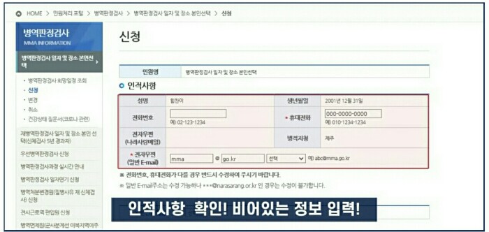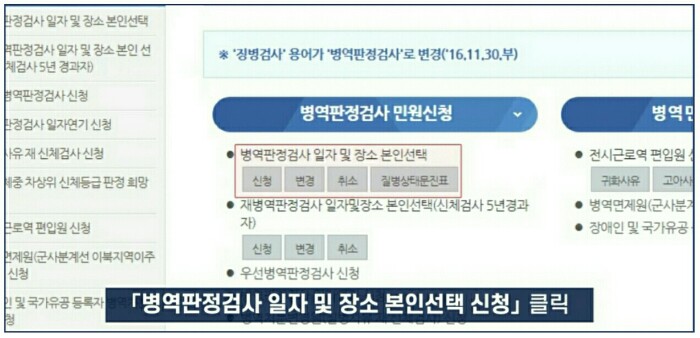 이어 병무청은 병역판정검사 대상자에게 병역판정검사를 받고 싶은 일자와 장소(병무청)를 본인이 선택할 수 있도록 운영하고 있습니다.