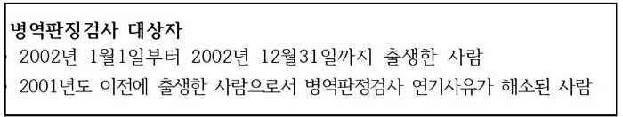 ➌ 2001년도 이전에 출생한 사람으로서 병역판정검사 연기사유가 해소된 사람