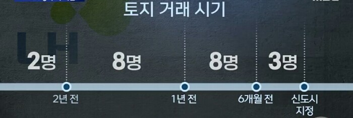 시기별로는 지구 지정 공고일 기준으로 2년전부터 19필지의 토지 매입이 이루어졌습니다. 매입시기는 공고일로부터 ① 6개월 전 3필지, ② 1년 전 8필지, ③ 2년 전 8필지, ④ 3~5년 이내 2필지, ⑤ 공고후 1필지를 매입했습니다.