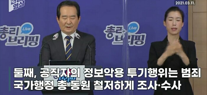 2. 공직자의 정보악용 투기행위는 국민에 대한 배신이며 국가의 기강을 무너뜨리는 범죄입니다. 국가행정을 총동원하여 막아왔던 코로나 방역처럼 가혹할 정도로 국민이 그만하라고 할 때까지 철저하게 조사하고 수사할 것입니다.