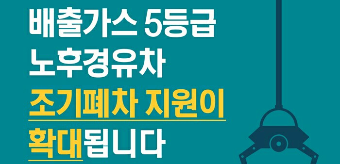 조기폐차는 초미세먼지 등 대기오염물질의 배출원인 노후경유차를 근본적으로 줄여나가는 저공해 지원 사업 중에 하나입니다. 이에 배출가스 5등급 노후경유 차량을 조기 폐차한 경유차 또는 노후 건설기계차에 대해 보조금을 지급합니다. 노후경유차 조기폐차 보조금 지원사업은 지자체에 따라 일정이 상이하므로 각 시군청 홈페이지에서 확인 후 신청하기 바랍니다.