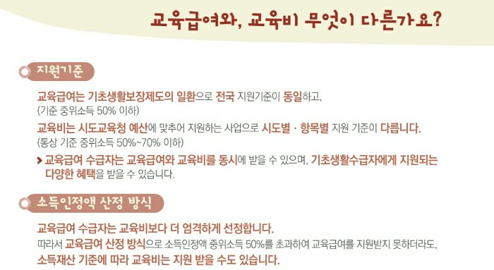 교육급여 및 교육비 차이는 무엇인가요?