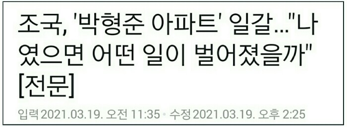 조국 전 법무부 장관이 국민의힘 박형준 부산시장 후보의 자녀 부동산 문제에 대해 페이스북을 통해 글을 올렸다. 조국 전 장관은 나에게 81년생 (의붓) 아들이 있고, 이 아들이 미확인 인물로부터 초호화 아파트 로얄층을 우손 700만원만 주고 구입하였고, 이후 내가 이 아들에게 1억원 웃돈을 주고 다시 구입한 것이 확인되었다면 어떤 일이 벌어졌을까? 라며 소감을 남겼다.