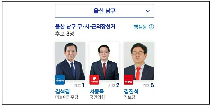 기초단체장 선거는 2개 선거구에서 울산 남구 3명, 경남 의령군 4명 총 7명이 후보자로 등록해 평균 3.5:1의 경쟁률을 나타냈습니다. 광역의원 선거는 8개 선거구에서 총 19명이 후보자 등록하여 평균 2.4:1을 기록했습니다. 기초의원 선거는 9개의 선거구에서 총 26명이 등록하여 평균 2.9:1의 경쟁률을 보였습니다.