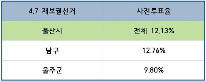 울산시 전체 사전투표율 : 12.13%