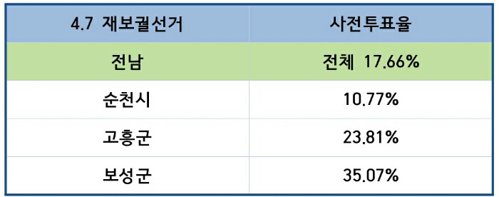 4.7 재보궐선거 사전투표율 결과