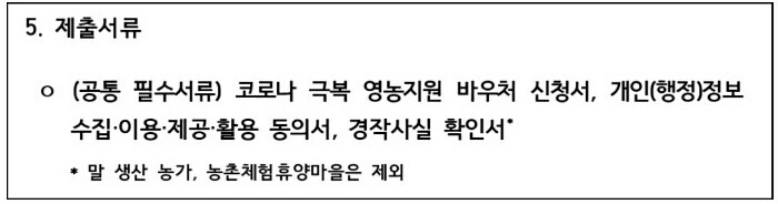 영농지원 바우처 제출서류