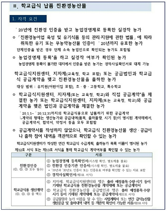 ③ 공급물량과 농가 이름을 알 수 있는 사업계획서 또는 연간 급식농산물 생산공급 및 출하내역 내역 등 객관적 확인이 가능한 서류